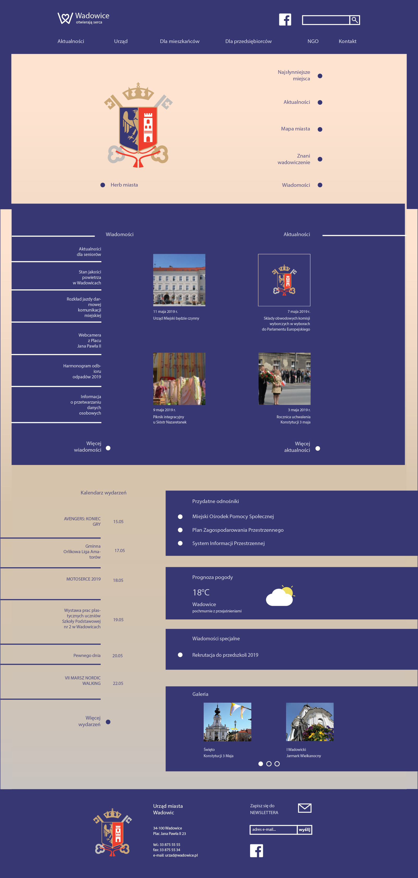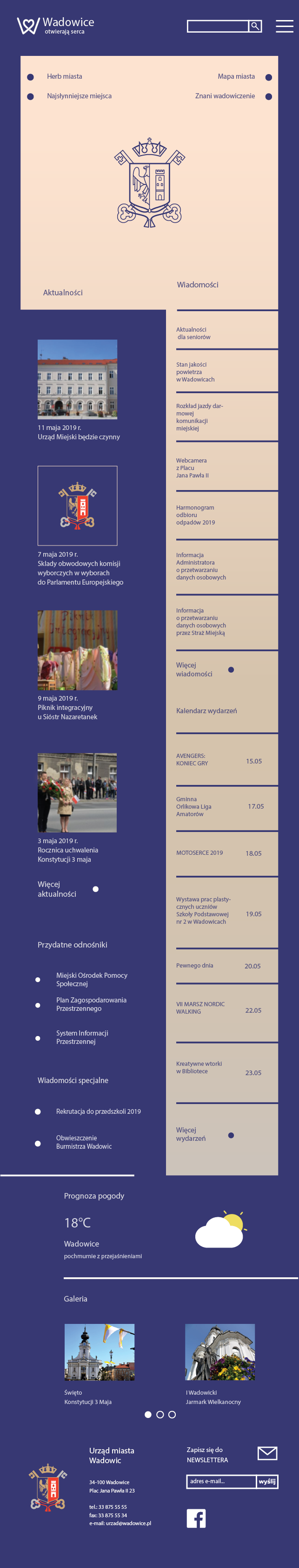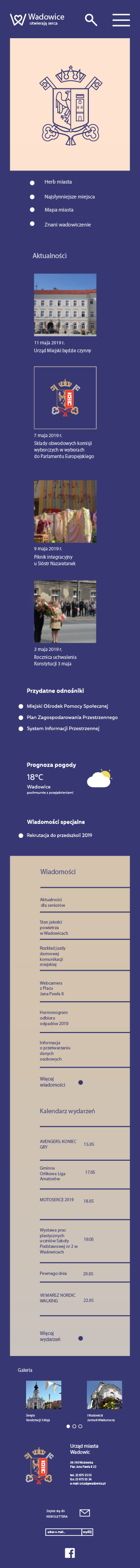 Strona internetowa z systemem identyfikacji wizualnej dla miasta Wadowic